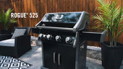High-quality grilling at an affordable price, the Rogue® 525 Propane Gas Grill by Napoleon is a versatile addition to any backyard living space. The easy to maintain black porcelain enameled lid and doors and stainless steel folding side shelves shrug off corrosion. It’s easy to move this grill in and out of the action zone thanks to the locking casters. This grill is just as beautiful on the inside with stainless steel sear plates to vaporize drips and stainless steel tube burners that ignite instantly with the JETFIRE™ ignition system. Throw a barbecue for the ages; with 660 square inches of total cooking area, you can easily feed a crowd. You’ll know it’s a Napoleon with the iconic porcelainized cast iron WAVE™ cooking grids for those distinctive sear marks. Use this grill for more than just searing up the perfect steak; use it to bake roast, and smoke too. Grill different and go Rogue® with the Rogue® 525 Gas Grill.