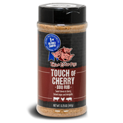 Three Little Pig’s Kansas City Touch of Cherry BBQ Seasoning is our most unique offering. Sweet cherry flavor enhanced with a tasty combination of sugar, brown sugar, salt, garlic, onion, spices, and natural cherry and smoke flavor, helps create a sweet caramelized flavor on your favorite meats. Touch of Cherry BBQ rub draws out a very unique flavor for pork, poultry, ham, chicken, fish, shrimp, mushrooms and veggies. Why not sprinkle some of this on sliced apples prior to baking to liven your taste buds–maybe even add a little cinnamon? Don’t miss trying this unique and flavorful Seasoning!