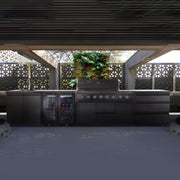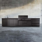 We've added flame failure safety technology, which automatically cuts off the gas if the flame goes out, offering added peace of mind. Additional new features include upgraded sintered stone tops, new sink module with integrated chopping board and rotisserie kit & charcoal tray now included with all BBQ modules.