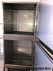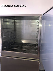 Used widely within the Hire and Catering Industry, the Heatlie Hotbox is ideal for heating food for large crowds and holding it at a desired temperature until ready to serve. Food can be heated in large containers or plated up. The Hotbox is available in two sizes for gas and one size for electric. The gas Hotbox is for outdoor use only. Hot Box 6000 – All stainless steel Dimensions: 1370H x 680D x 540W Comes with 6 shelves -capacity for 12 (available in spare parts & accessories) Gas only Hot Box 9000- All Stainless Steel Dimensions: 1830H x 750D x 710W Comes with 9 shelves – capacity for 18 shelves (available in spare parts & accessories) Gas only Electric Hot Box – All Stainless Steel Two seperate ovens with seperate controls. Comes with 7 shelves – capacity for 14 (available in spare parts & accessories)